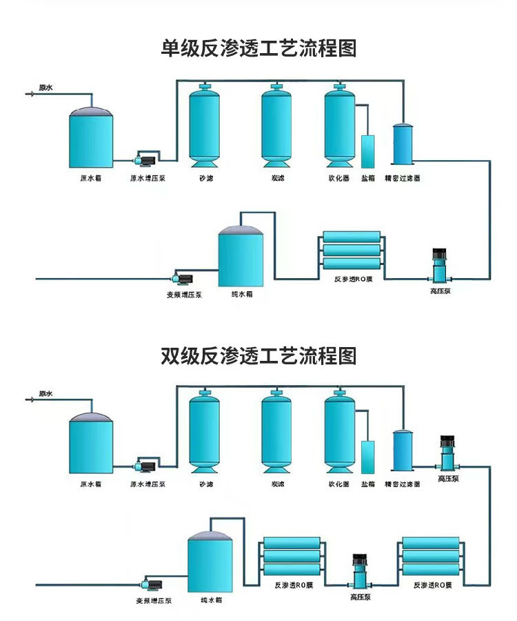 预处理系统-反渗透系统-中间水箱-粗混合床-精混合床-纯水箱-纯水泵-紫外线杀菌器-抛光混床-精密过滤器-用水对象(≥18MΩ.CM)(传统工艺) 预处理-反渗透-中间水箱-水泵-EDI装置-纯化水箱-纯水泵-紫外线杀菌器-抛光混床-0.2或0.5μm精密过滤器-用水对象(≥18MΩ.CM)(最新工艺) 预处理-一级反渗透-加药机(PH调节)-中间水箱-第二级反渗透(正电荷反渗膜)-纯水箱-纯水泵-EDI装置-紫外线杀菌器-0.2或0.5μm精密过滤器-用水对象(≥17MΩ.CM)(最新工艺) 预处理-反渗透-中间水箱-水泵-EDI装置-纯水箱-纯水泵-紫外线杀菌器-0.2或0.5μm精密过滤器-用水对象(≥15MΩ.CM)(最新工艺) 预处理系统-反渗透系统-中间水箱-纯水泵-粗混合床-精混合床-紫外线杀菌器-精密过滤器-用水对象(≥15MΩ.CM)(传统工艺) EDI纯水模块和RO反渗透在纯水中的应用 RO、EDI、树脂离子交换是当今制备纯水的必选工艺设备。