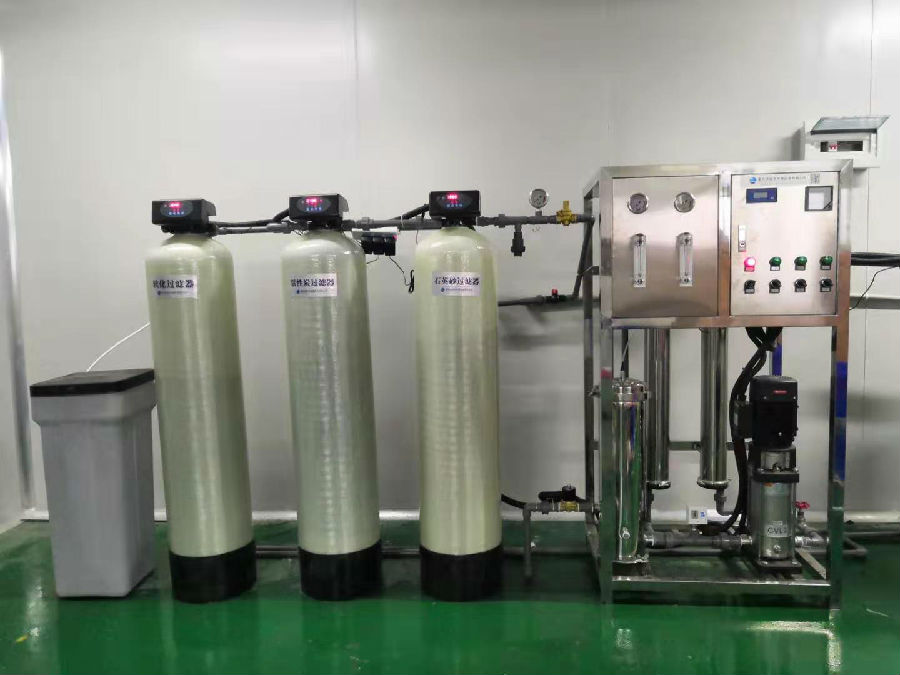 原水箱→增压泵→多介质过滤器→活性炭过滤器→保安过滤器→高压泵→一级反渗透→纯水箱