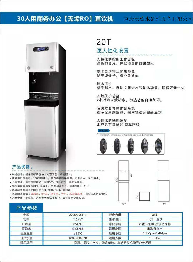 外壳锁式组装方便更新;纯净水系统抽拉模块设计,方便更换和维修;可自动开关机功能;温度可调节;