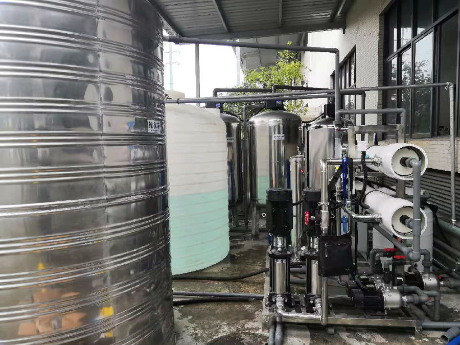 原水箱→增压泵→多介质过滤器→活性炭过滤器→保安过滤器→高压泵→一级反渗透→纯水箱